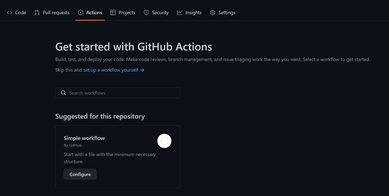Actions에 Workflow 파일 작성