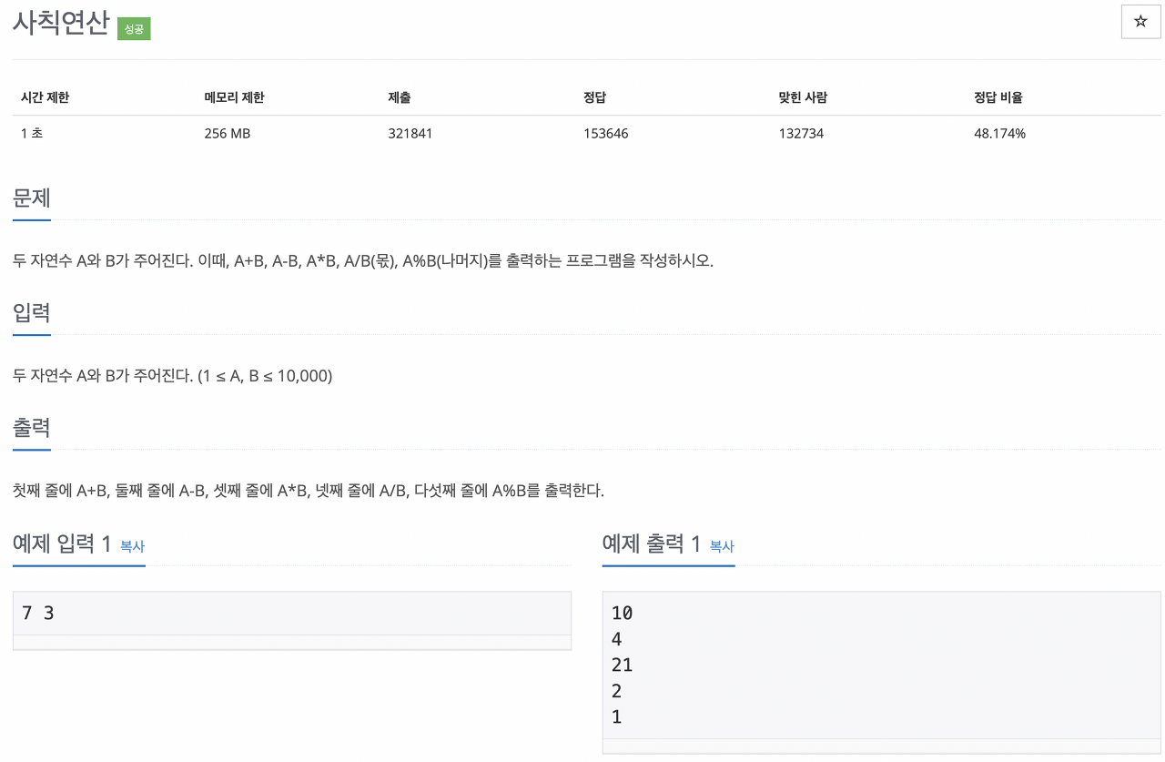 입력 값을 숫자배열로 변환해서 연산자를 통해 출력하는 문제였는데 주의할 점이 나머지 연산자는 소수점 이하 자리를 절삭하고 출력을 해야하는 문제였다.