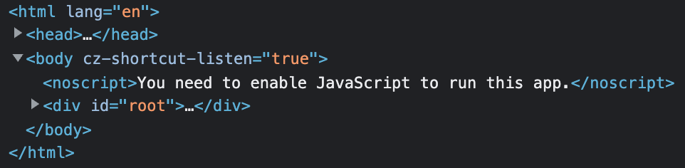 그래서 React로 생성된 html을 보면 root의 id를 하고있는 div태그가 전부다.