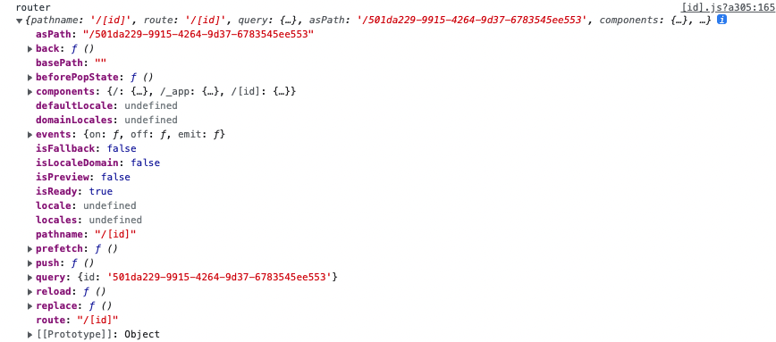 | isReady | 라우터 필드가 클라이언트 측에서 업데이트되고 사용할 준비가 되었는지 여부 |