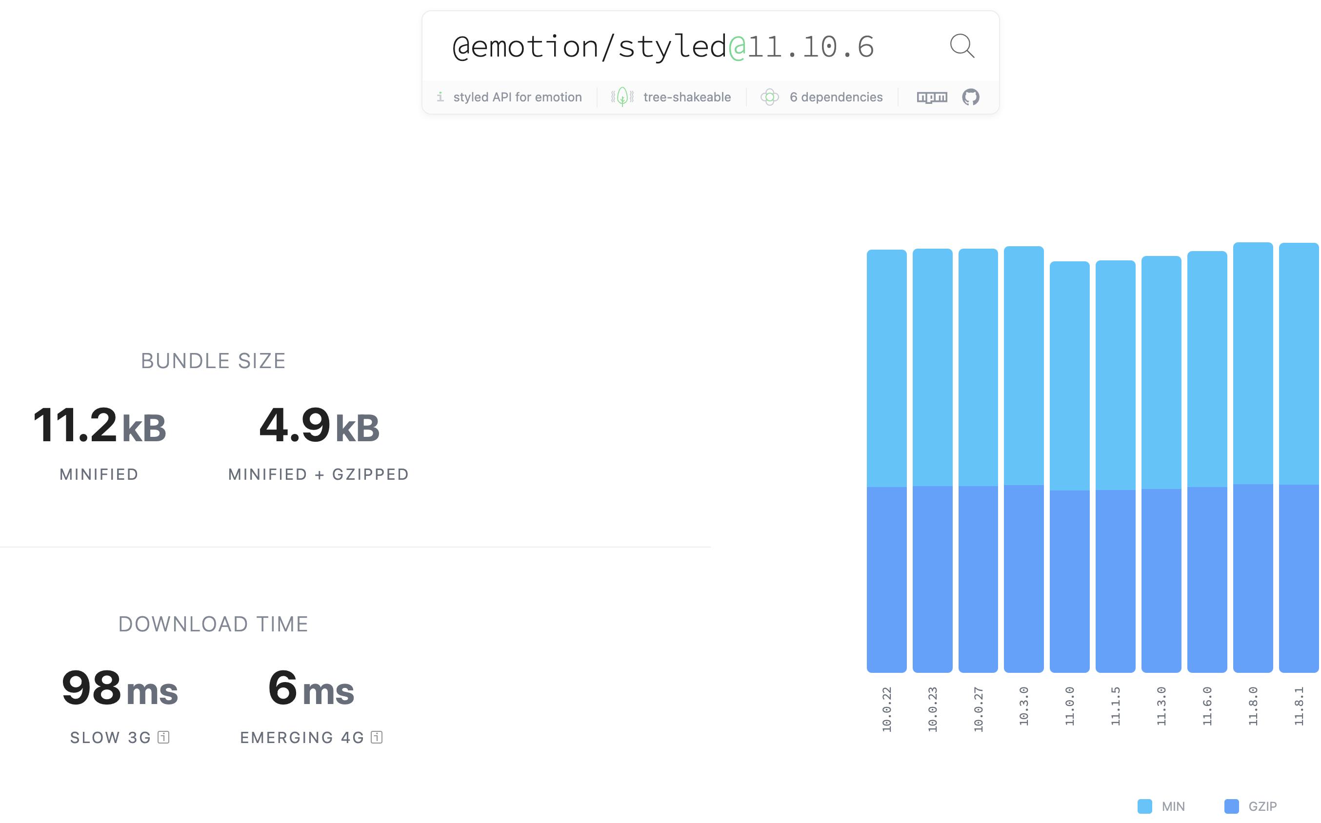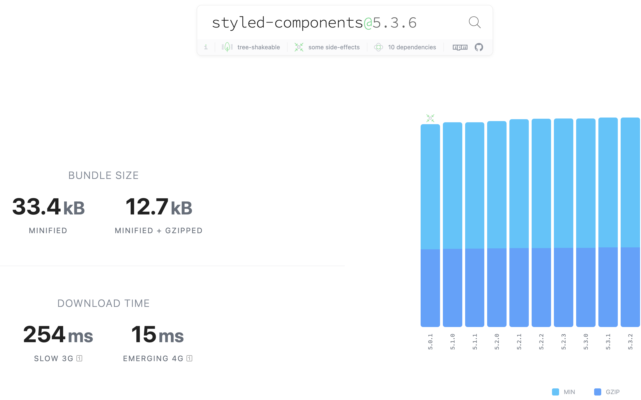 먼저 https://bundlephobia.com/ 를 참고해서 최신 라이브러리 번들 사이즈를 살펴보자.