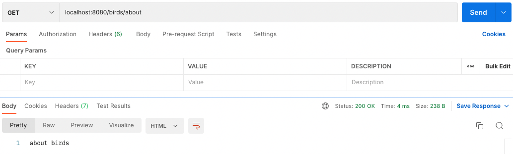 - localhost:8080/birds/about 은 about birds를 보여준다.
