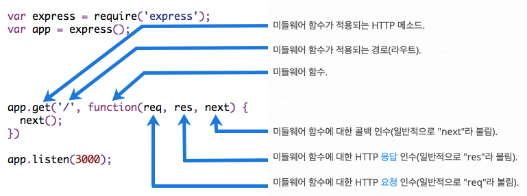 - app : Express의 인스턴스