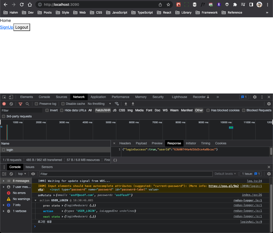 마지막으로 useMutation에서 onMutate상태가 되면 디스패치로 로그인 성공한 함수를 보내주고..