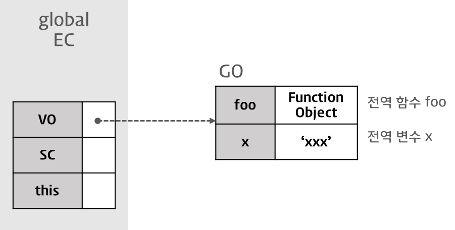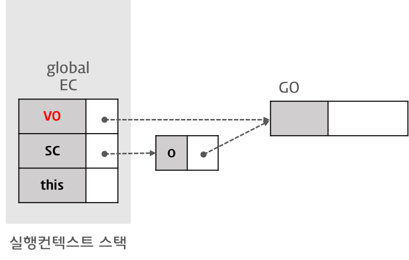 Variable Object는 실행 컨텍스트의 프로퍼티이기 때문에 값을 갖는데 이 값은 다른 객체를 가리킨다.