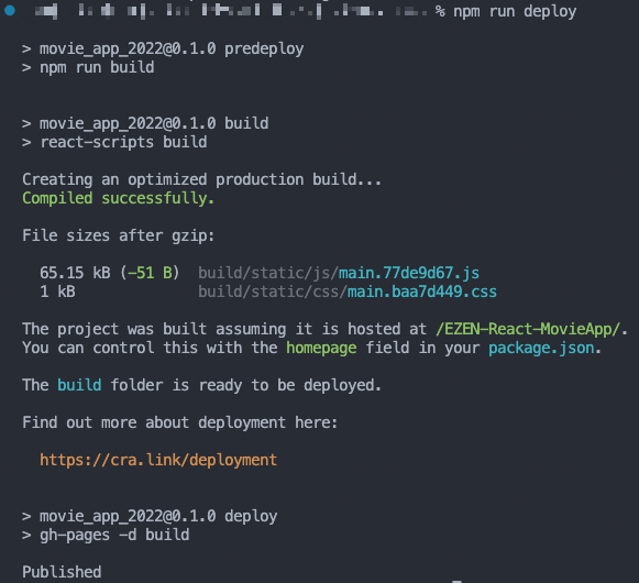 터미널에 npm run deploy 명령어를 입력한다.