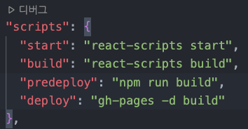 package.json 의 scripts 에 predeploy 와 deploy 를 추가해준다.
