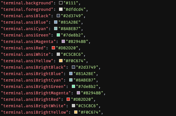 마음에 드는 테마를 선택해 코드를 복사하여 settings.json에 적용하면 된다.