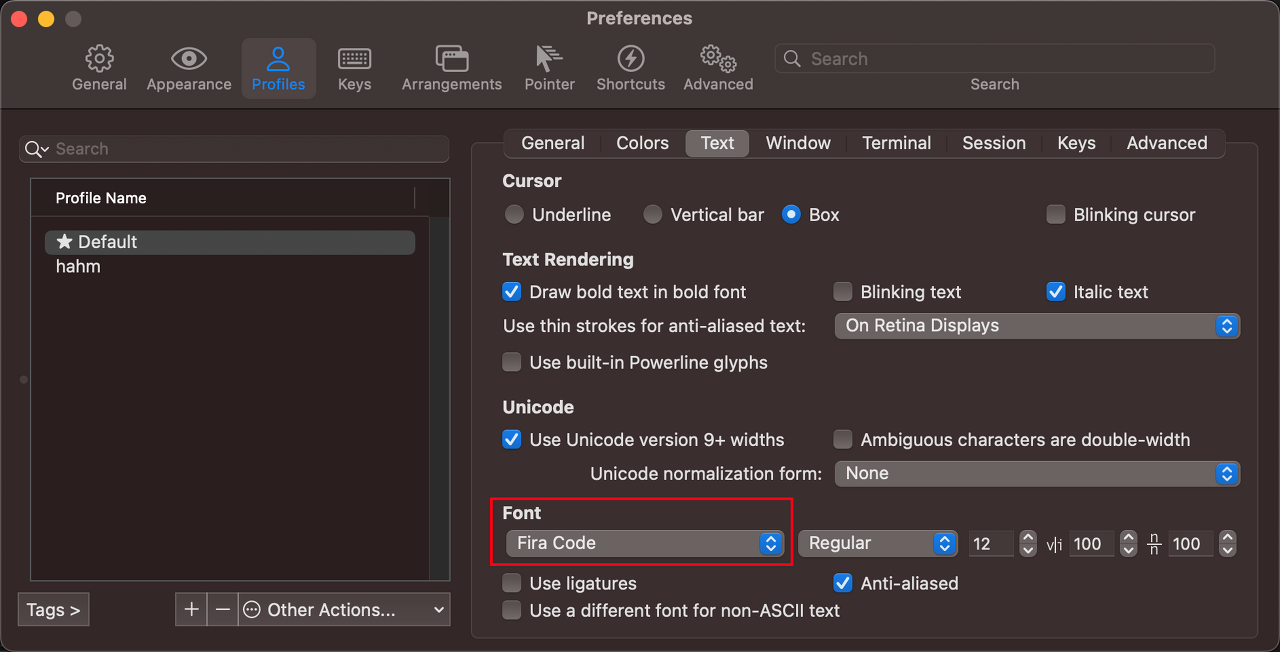 피라폰트 적용하고 iTerm의 설정에서 폰트 설정해준다.