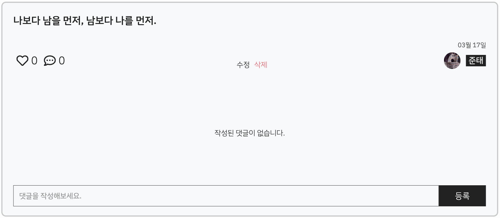 수정 전에는 포스트를 클릭 하면 세로방향으로 커지고 댓글 관련 form영역이 있었다.