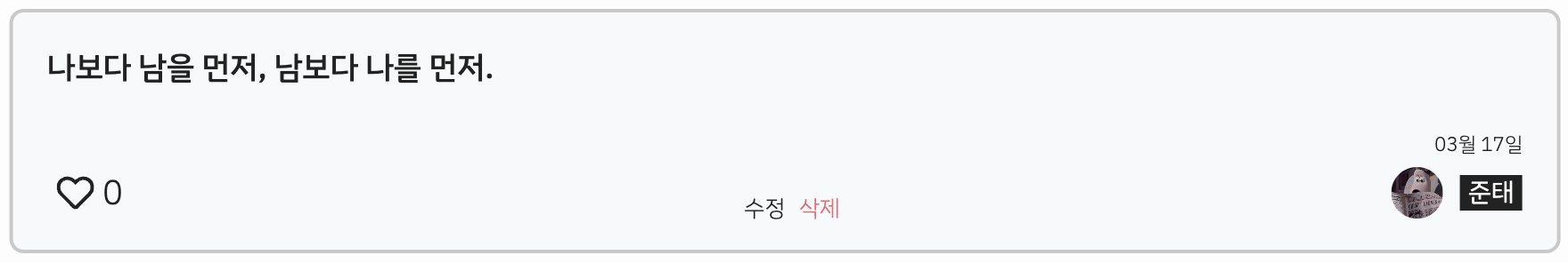 그리고 포스트를 작성 한 유저라면 수정/삭제 버튼이 보이도록 되어 있었다.