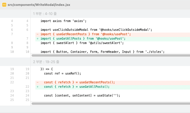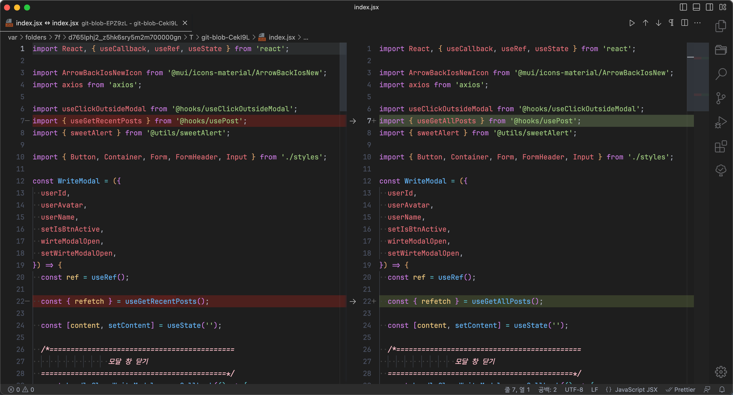 - 비교를 원하는 파일 클릭 후 Command + D 로 실행하기
