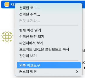 - 비교를 원하는 파일 우클릭 - 외부 비교도구로 실행하기