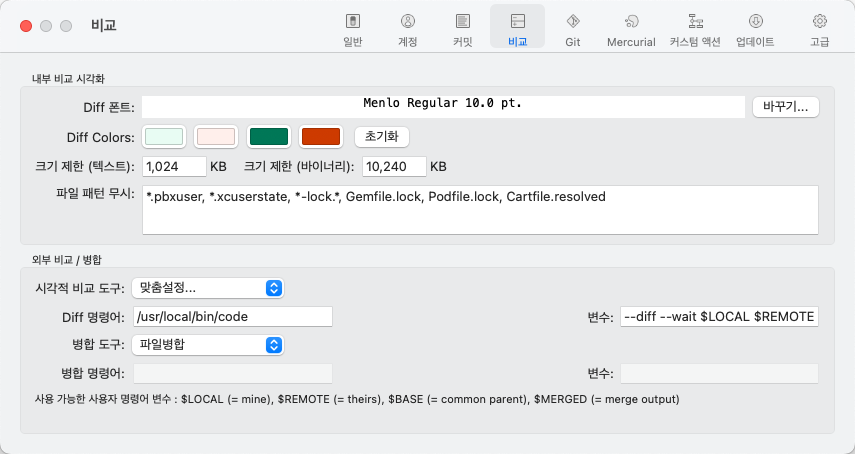 - 변수 : --diff --wait $LOCAL $REMOTE