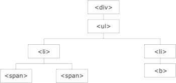 - <b> 요소는 오른쪽 <li>의 자식 이며 <ul> 및 <div>의 자손이다.