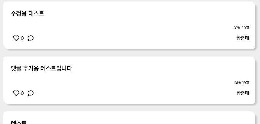 일단 수정/삭제 기능을 추가하기 위해서 post카드를 클릭했을 때 수정버튼과 삭제버튼이 나오도록 구현했다.