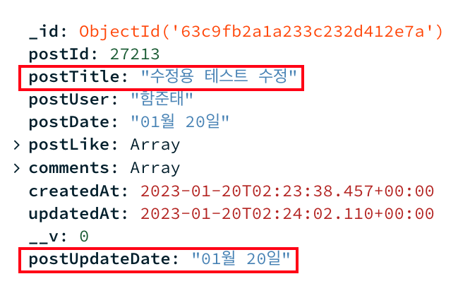 { $set: { postTitle: req.body.postTitle, postUpdateDate: now.format('MM월 DD일') } },