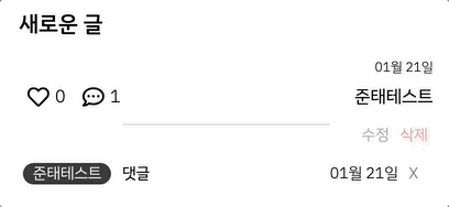 댓글의 삭제버튼 X는 포스트를 작성한 사람이거나, 댓글을 작성한 본인에게만 보인다.