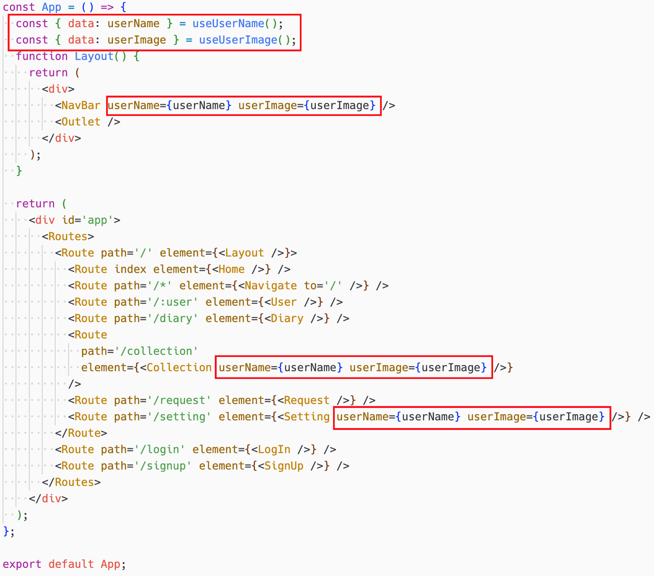 NavBar로 예를 들자면 App컴포넌트에서 useQuery를 이용해 받아온 데이터를 props로 받아서 사용했는데 이는 전역관리와는 취지가 맞지 않았다.