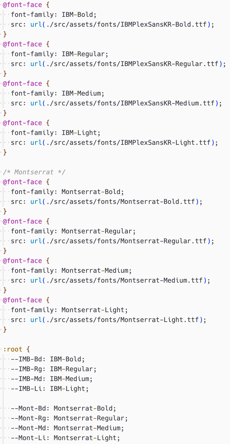 그래서 웹폰트에서 실제로 사용하는 폰트만 로컬로 다운받아 직접 @font-face로 적용해줬다.