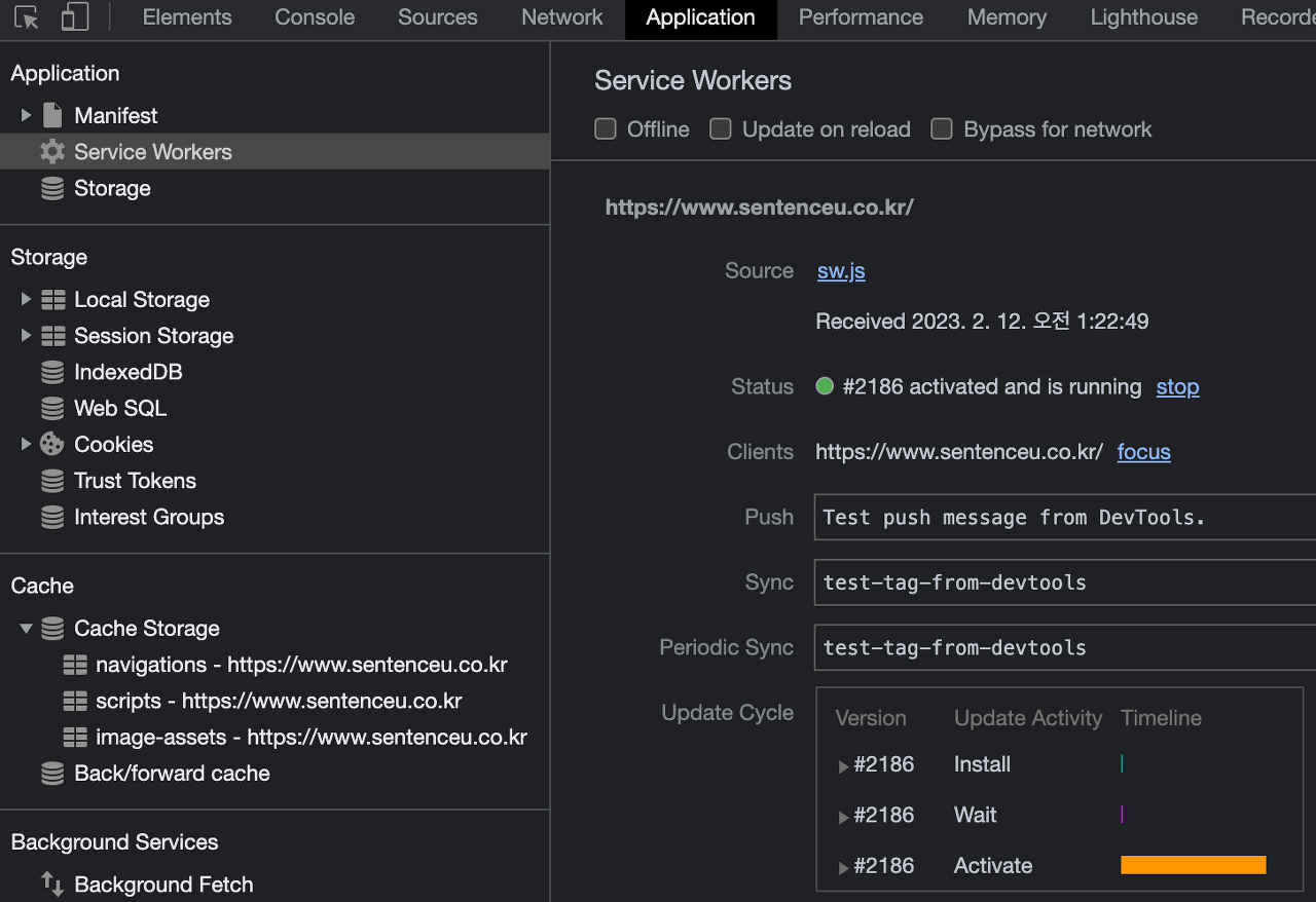 2~3일간 이 서비스워커에만 고생했더니 결국 성공적으로 결과가 나와서 다행이라고 생각했다.