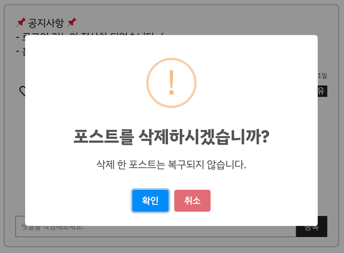 text: '삭제 한 포스트는 복구되지 않습니다.',
