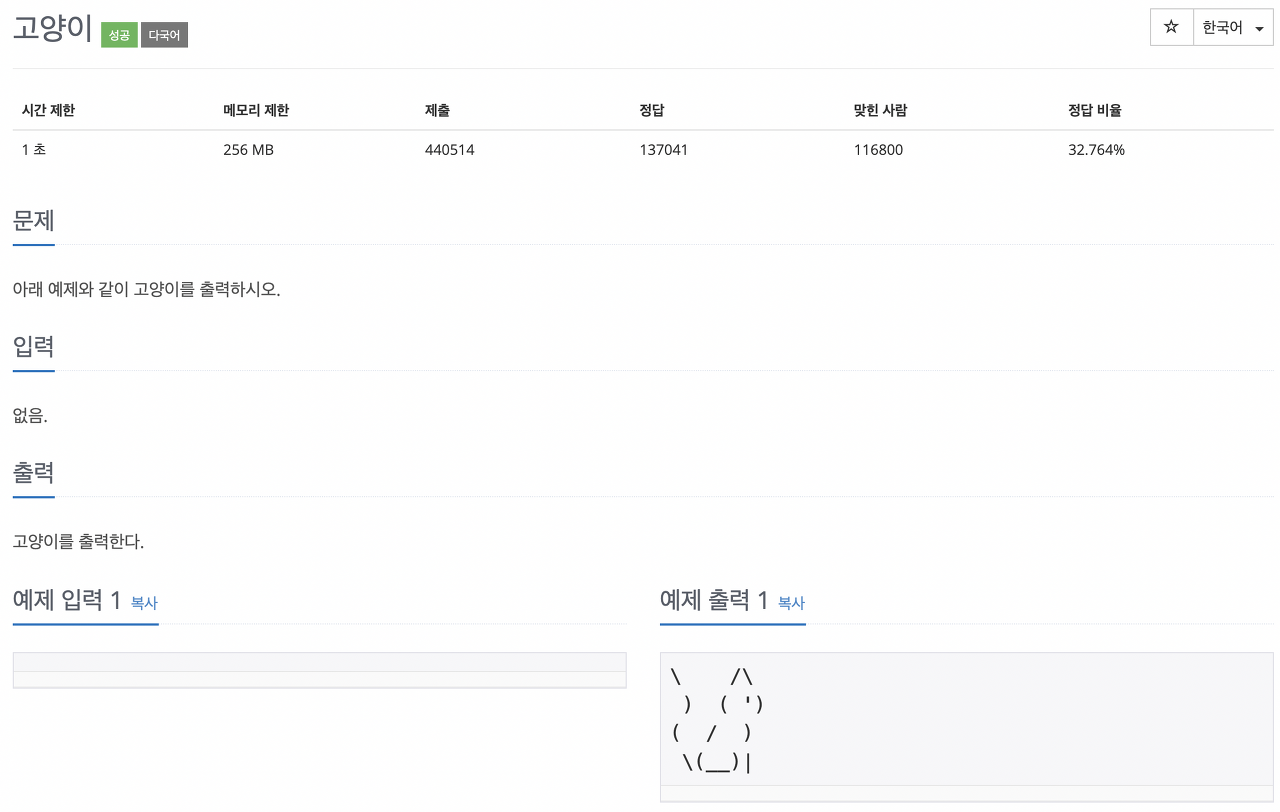 목차 목차 목차 닫기 반응형 문제 나의 풀이 console.log(`\\ /\\\n ) ( \')\n( / )\n \\(__)|\n`); 마무리 줄바꿈을 \n 을 통해 출력하는 간단한 문제였다. 반응형 공유하기 게시글 관리 Kyle Dev